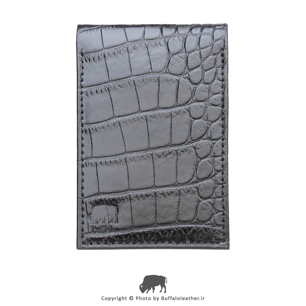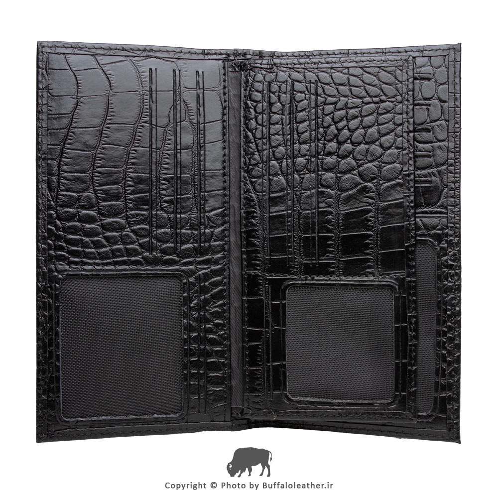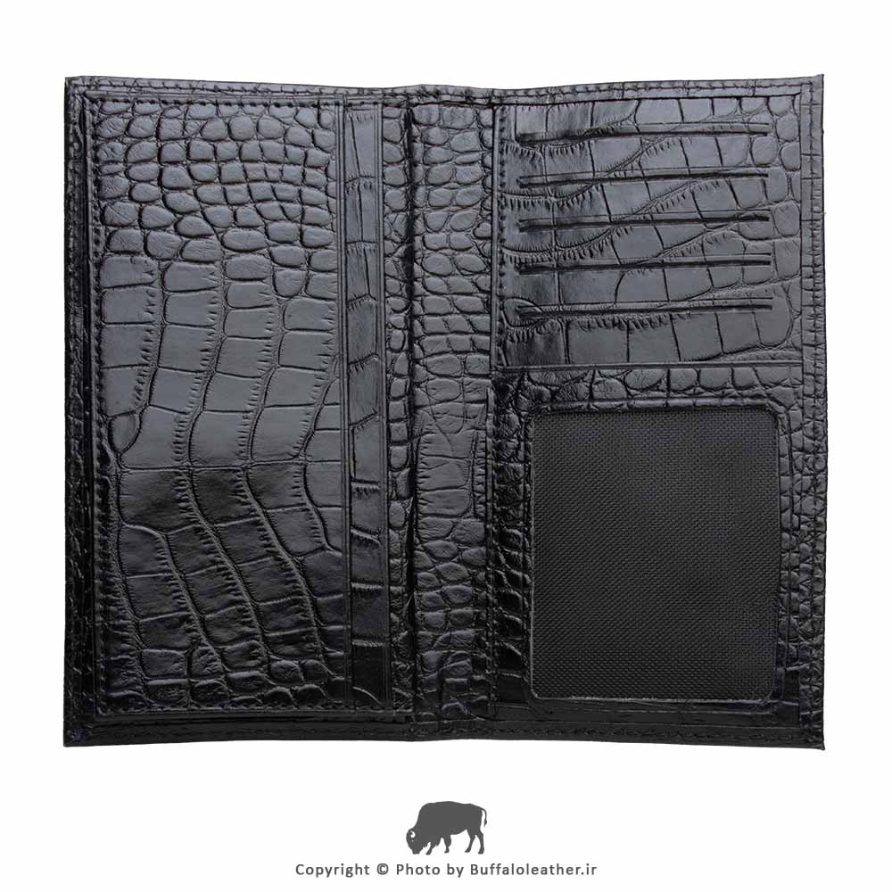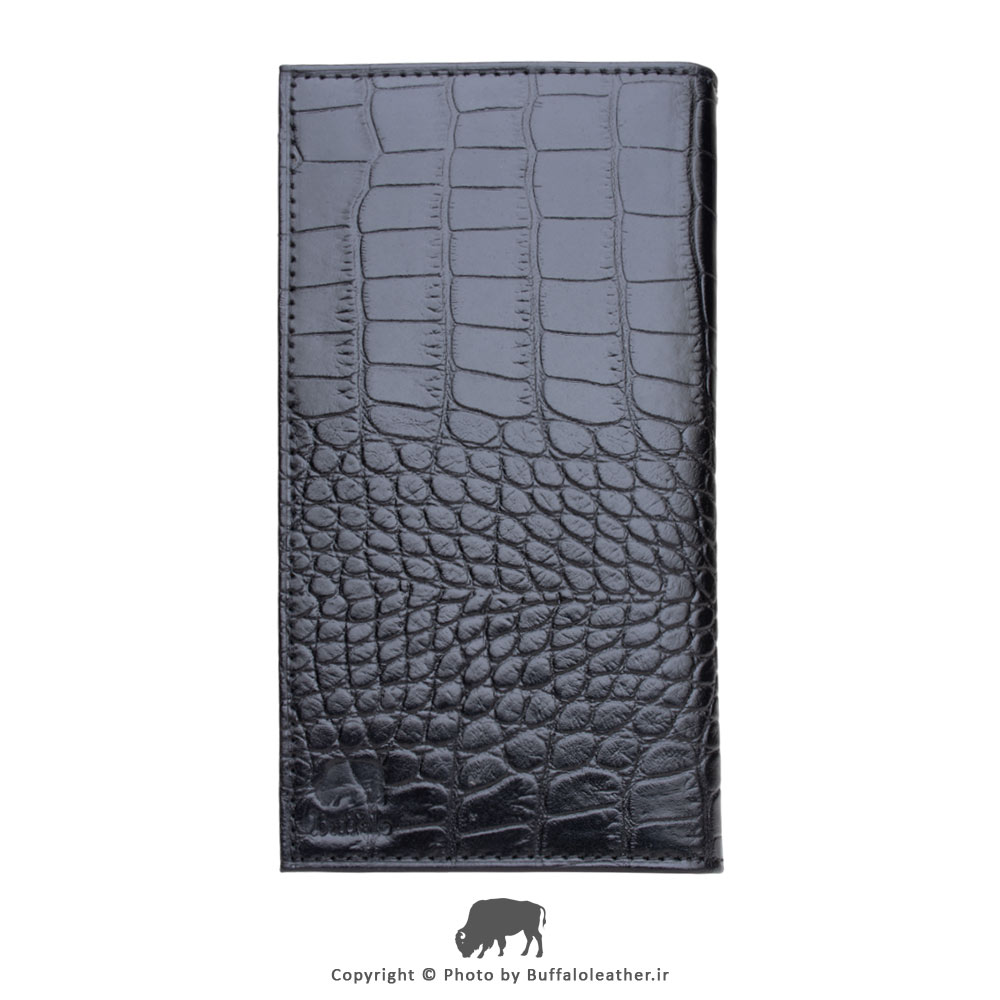 ست چرم مردانه دو تکه شامل کیف پول پالتویی و جاکارتی طرح کروکو رنگ مشکی